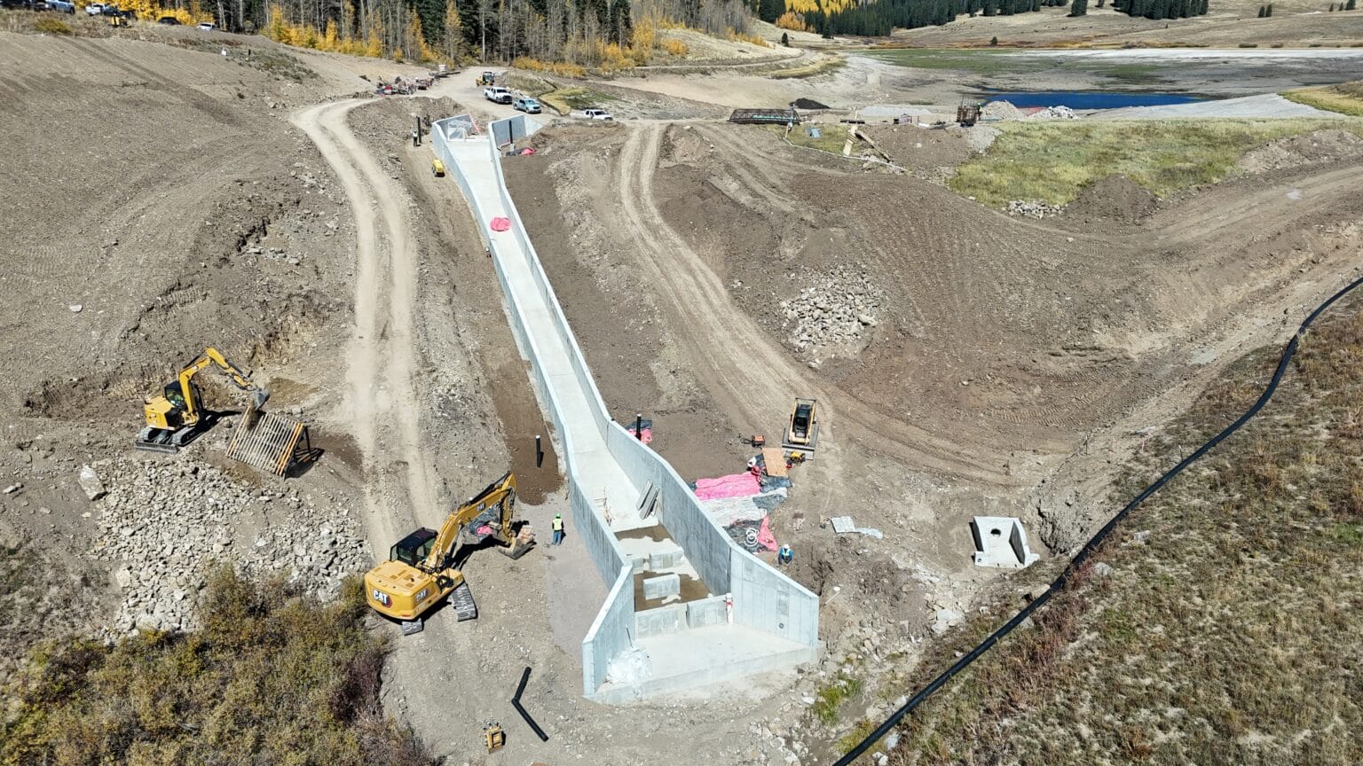The rehabilitation effort completed the demolition and removal of the existing concrete spillway and involved the construction of a new concrete spillway within the existing footprint, including the control section, chute, and stilling basin. During construction, the team managed water flow through the implementation of a design-build coffer dam and significant bypass pumping systems.