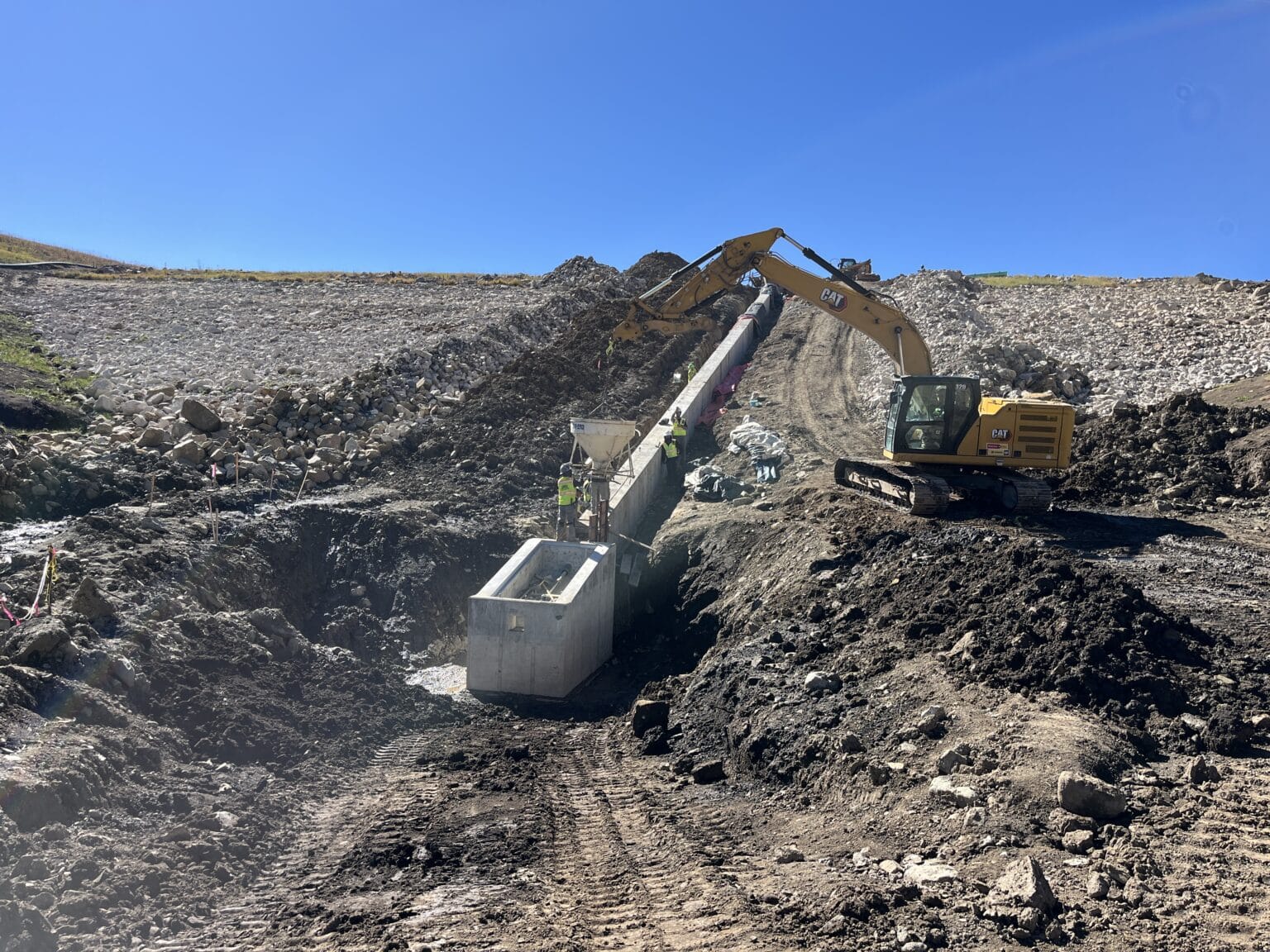 Critical work on the outlet conduit included the installation of a cured-in-place liner and the replacement of the outlet and inlet concrete structures, gate, operator, and trash rack. Additionally, crews modified the embankment to control seepage with new embankment backfill and drainage systems. They also performed channel grading and placed riprap.